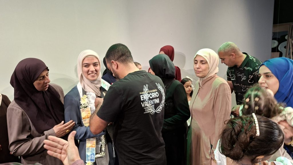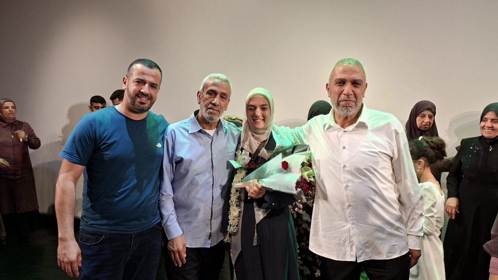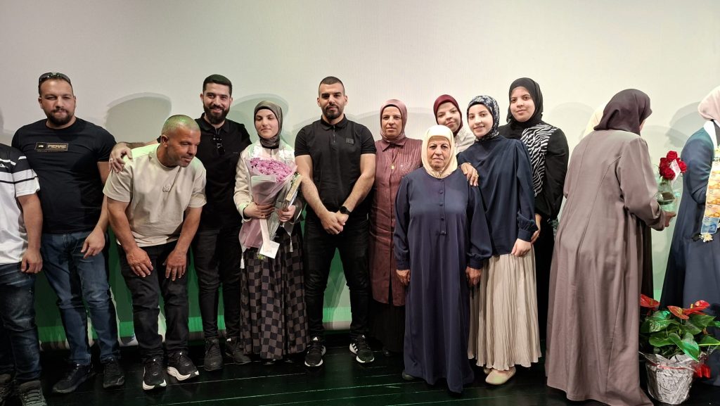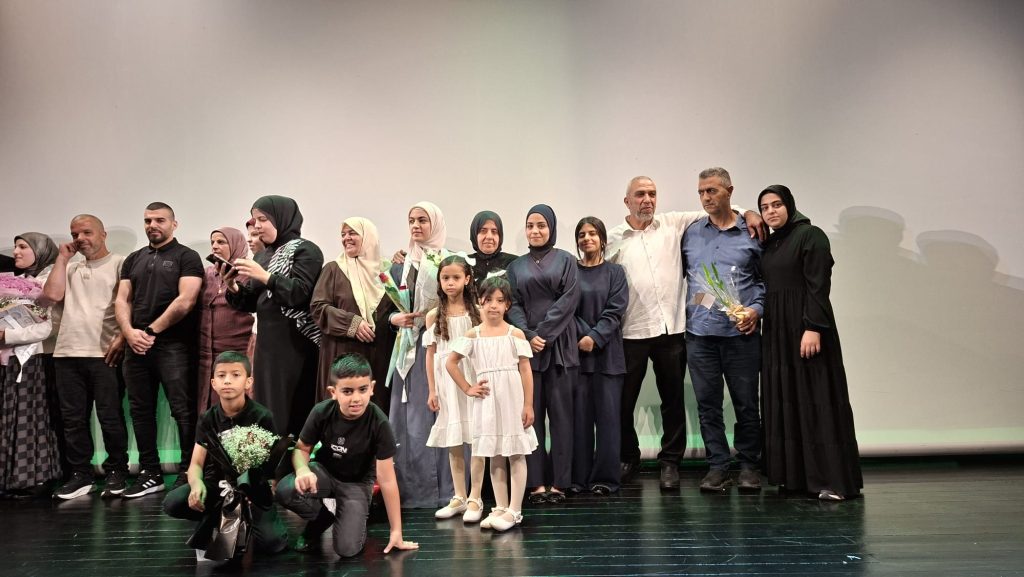 ثم جاءت لحظة الفخر الكبرى، حين دعت العريفة كلاً من السيد محمد صالح إغبارية، والسيد توفيق الحج عوض، والدكتور محمد أمارة، والمربية هيام محاميد، والمربية حنين إغبارية، ليعتلوا المنصة ويضعوا وشاح الحافظة على جبين كل من آية وعائشة، في لحظةٍ رمزيةٍ خالدةٍ أعلنوا خلالها إتمام الحفظ والتثبيت.