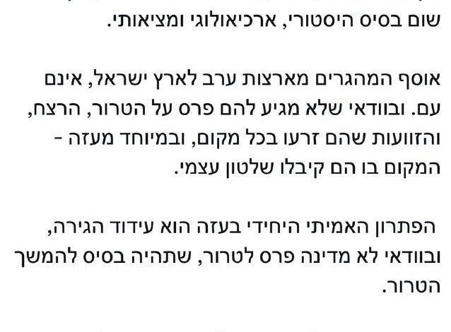 وتابع الوزير أن “الحل الوحيد الحقيقي في غزة هو تشجيع الهجرة الطوعية، وليس إقامة دولة تُمنح مكافأة على الإرهاب وتتحول إلى قاعدة لاستمرار العمليات”.