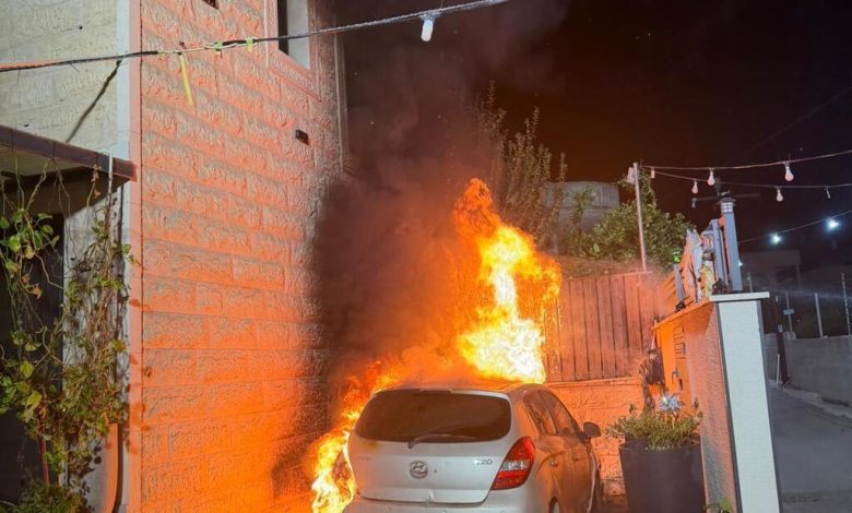 احتراق مركبة قرب مبنى في باقة الغربية دون إصابات
