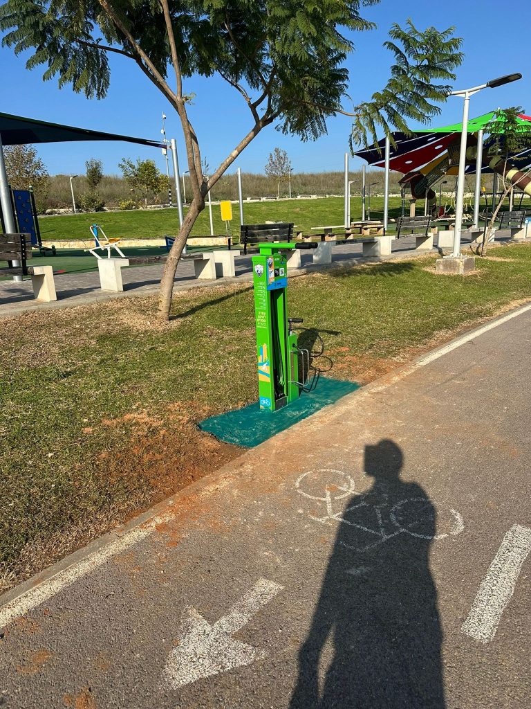 كما تحتوي المحطات على ضاغط هوائي (كومبروسر) يتيح نفخ عجلات الدراجات وعربات الأطفال بكل سهولة. هذا المشروع يُنفَّذ كمرحلة أولى تجريبية، في إطار السعي لتطوير البنية التحتية وتشجيع استخدام الدراجات كوسيلة تنقّل آمنة وصحية. ومن هنا، نهيب بأهالي بلدنا الأعزاء المحافظة على هذه المحطات والممتلكات العامة، لضمان استمرارها وخدمة جميع مستخدمي الدراجات والجمهور الكريم. كفر قرع… نحو بيئة أنظف وحياة أكثر نشاطًا”.