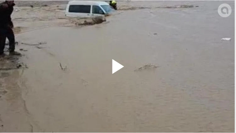 إنقاذ زوجين وطفل حوصروا داخل مركبتهم بسبب الفيضانات على شارع 80