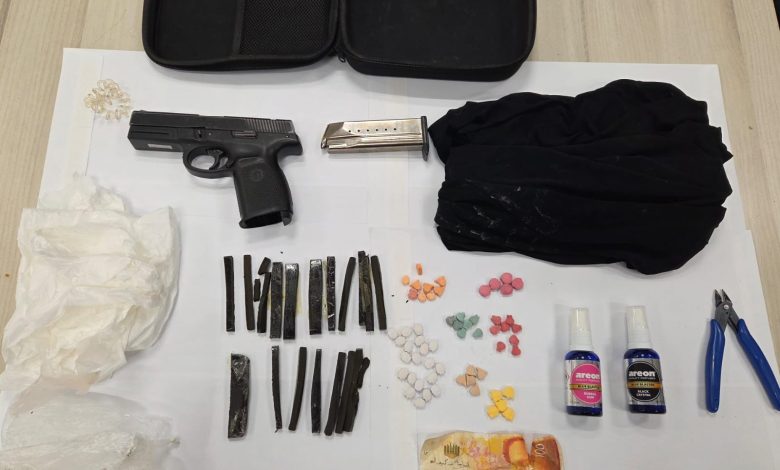 كما أفادت الشرطة بأن عملية استخبارية مركّزة نفذتها شرطة محطة شعفاط أسفرت عن العثور على مركبة متوقفة يُشتبه بأنها مسروقة، وداخلها تم ضبط مسدس محمّل، وذخيرة، ومخدرات خطرة، بينها 93 غرامًا من مادة الحشيش و57 حبة من مخدر الإكستازي.