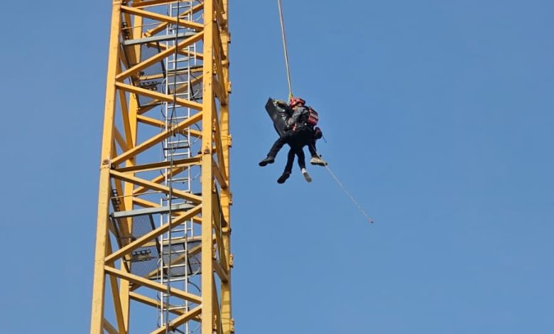 إنقاذ عاملين عالقين على رافعة بارتفاع 50 مترًا في ورشة بناء باللد