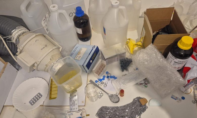 وأفاد البيان أن أفراد مركز شرطة الخضيرة، وبالتعاون مع وحدة لاهف 433 وقسم الإنفاذ والرقابة في وزارة الصحة، نفّذوا هذا الأسبوع مداهمة لشقة سكنية في المدينة، جرى خلالها كشف مختبر يُشتبه بأنه استُخدم لإنتاج أدوية بطرق غير قانونية.