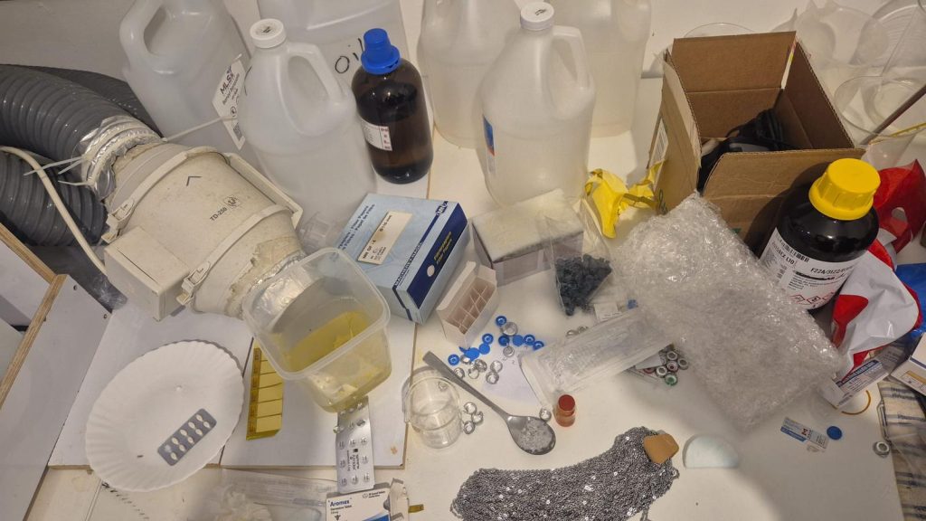 وخلال التفتيش، ضبطت القوات زيوتًا في قوارير، ومواد مختلفة تُستخدم في إنتاج أدوية يُشتبه بأنها ستيرويدات بنائية، إلى جانب مساحيق وسوائل مشبوهة، وكبسولات فارغة استُخدمت لإعداد منتجات غير مسجّلة أو مصادق عليها من قبل وزارة الصحة.