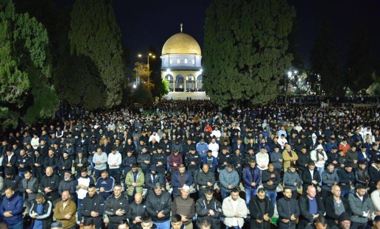 شهد المسجد الأقصى، مساء اليوم، توافد نحو 100 ألف مصلٍ أدّوا صلاتي العشاء والتراويح، في أجواء روحانية مميزة ضمن ليالي شهر رمضان المبارك، وسط حضور واسع من مختلف المناطق.