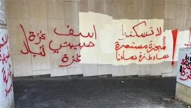 أفاد الناطق بلسان الشرطة أنّه: “عثر أفراد الشرطة على عبارات داعمة لغزة خُطّت على جدران مبان عامة وأعمدة في مدينة…